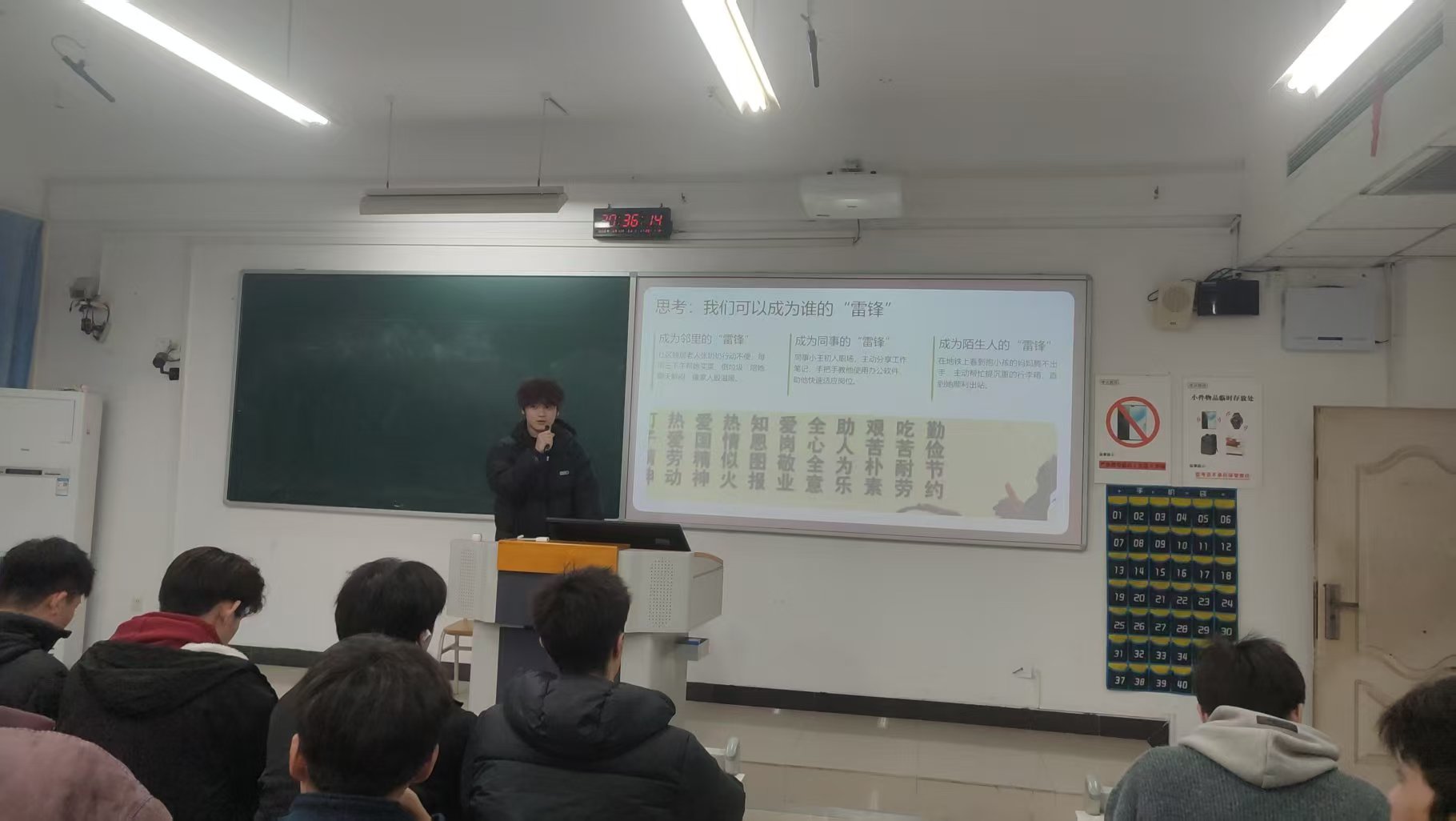 活动围绕走近雷锋同志、雷锋精神核心内涵、新时代雷锋精神、身边的活雷锋、行动倡议五个环节展开。班长带领同学们回顾雷锋同志的生平事迹,重温雨中送大娘、义务修桥补路、匿名捐款灾区等经典瞬间,深刻感受雷锋无私奉献、爱岗敬业、勤俭节约的高尚品格。在交流分享中,同学们共同学习雷锋精神的时代内涵,从赤子情怀、奉献精神、敬业精神、创新精神、创业精神五个维度,理解雷锋精神的价值内核。大家结合郭明义、张桂梅、汪勇等新时代榜样事迹,认识到雷锋精神从未过时,而是以志愿服务、岗位担当、爱心奉献等形式,在当代持续焕发生机。