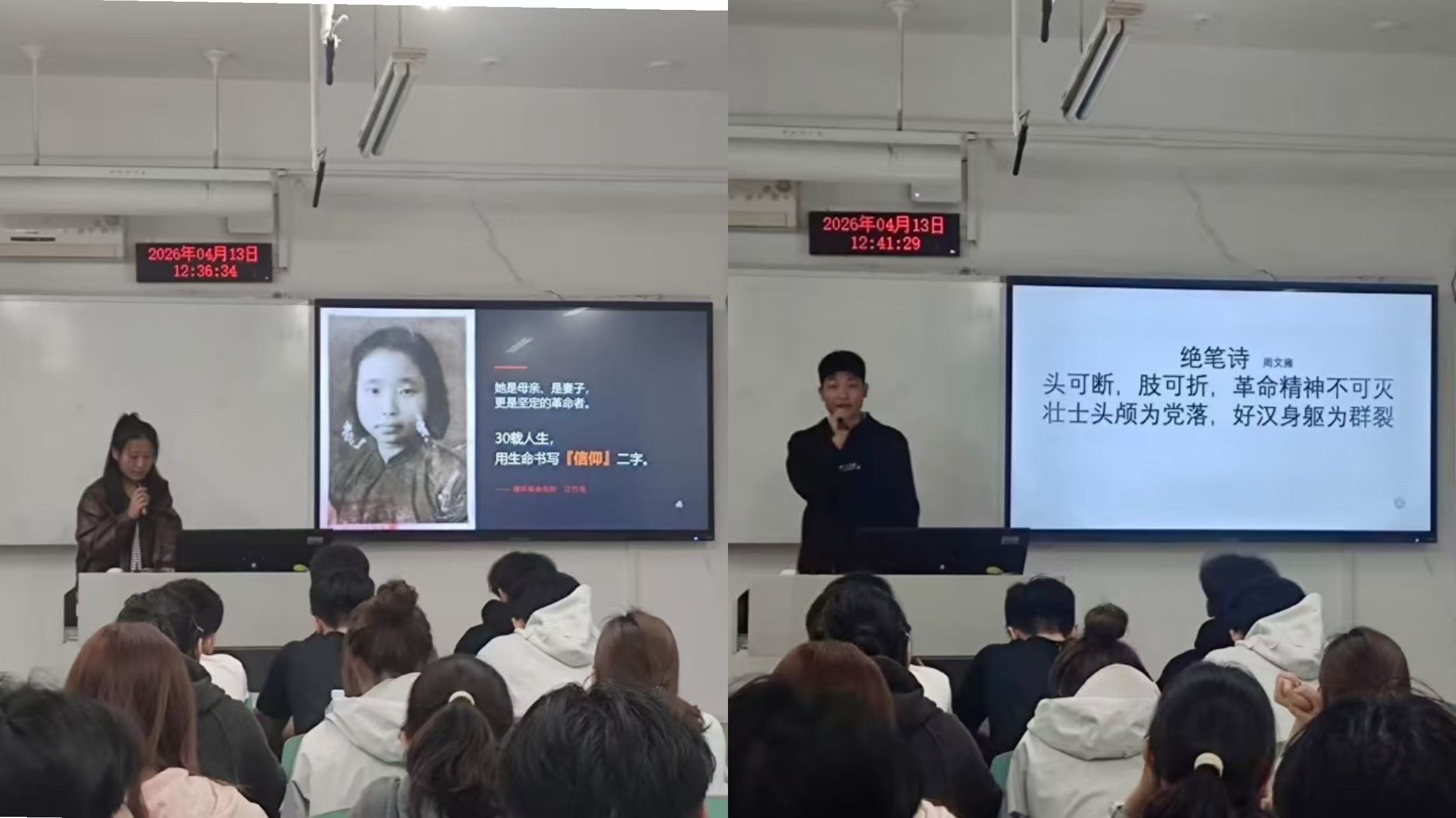 报告会上,全体师生共同重温红色记忆、讲述英雄事迹、感悟精神力量。清明时节,春风拂面、草木含青,在缅怀先辈、追思故人的传统氛围里,更应铭记那些为民族独立、人民解放、国家富强抛头颅、洒热血的革命先烈。每一段红色故事都是波澜壮阔的历史,每一位革命英雄都是精神的丰碑,重温红色故事、传承红色基因,是对先烈最好的告慰,也是新时代青年义不容辞的责任。