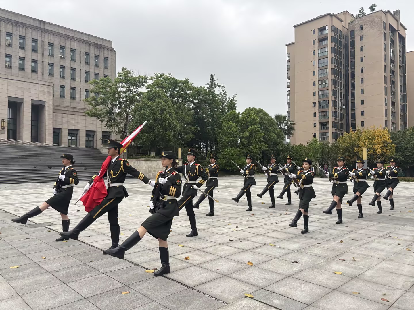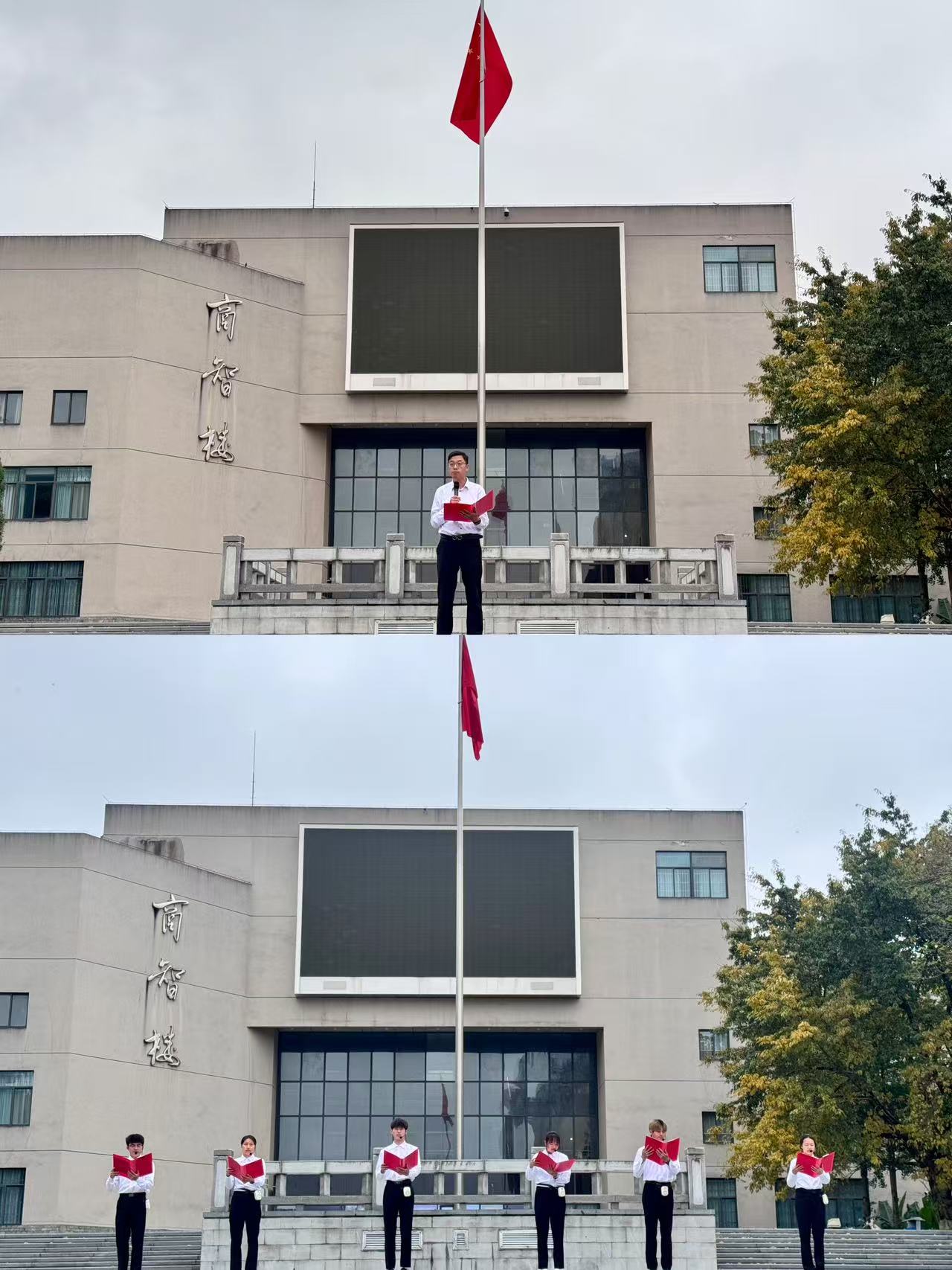 本次升旗仪式以缅怀先烈、强体兴邦为核心,流程庄重有序,氛围肃穆昂扬。活动开始,国旗护卫队迈着整齐划一的步伐,护送五星红旗缓缓入场,全体师生庄严肃立,向五星红旗行注目礼,表达对祖国的崇高敬意与对先烈的深切缅怀。伴随着雄壮激昂的国歌声,五星红旗冉冉升起、迎风飘扬,每一缕晨光洒在国旗上,都彰显着新时代青年传承红色精神的坚定信念。