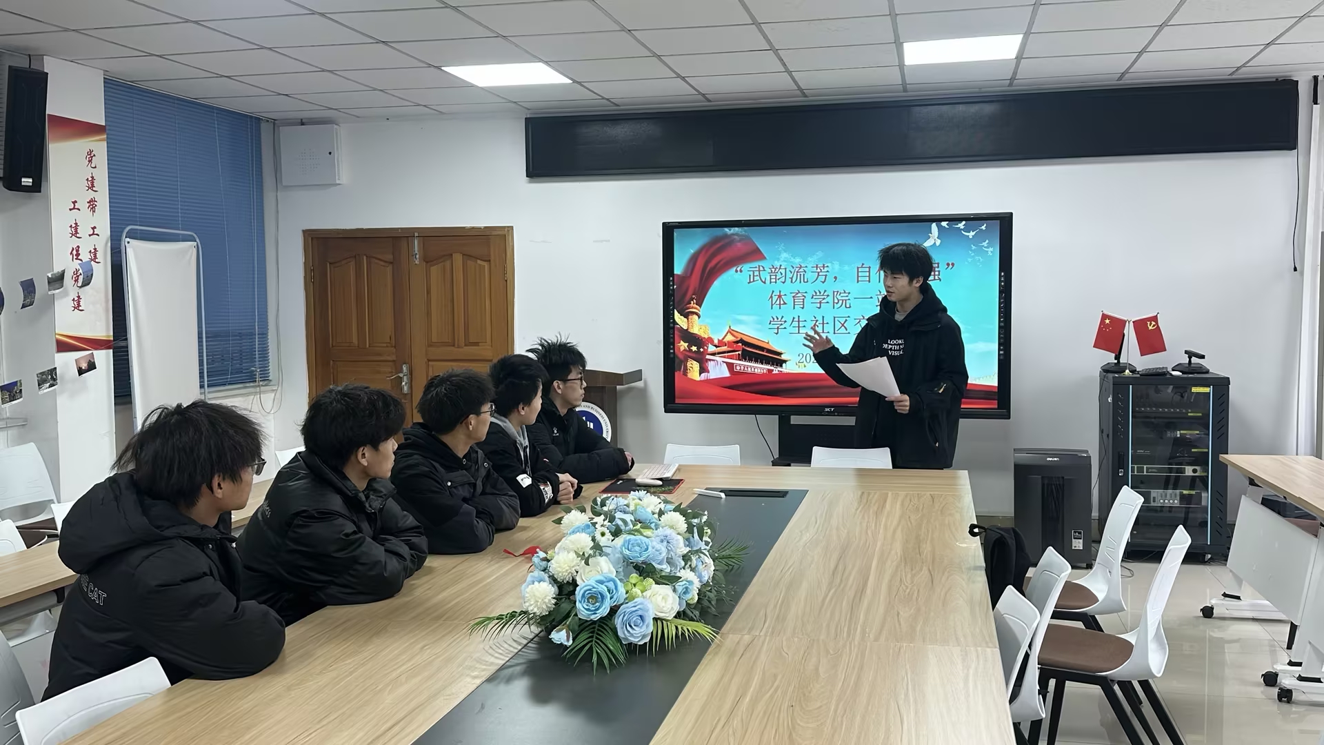 为传承中华优秀武术文化,助力学生强健体魄、厚植文化自信,扎实推进体育学院“一站式”学生社区建设,12月16日,体育学院南六楼管会于学院二楼会议室举办“武韵流芳,自信自强”主题交流会。